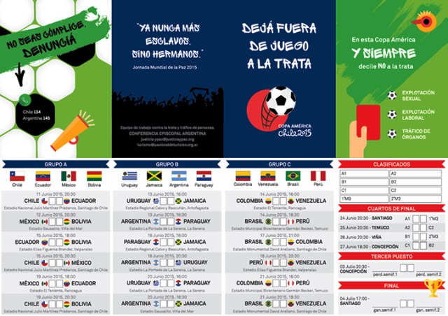 Buenos Aires, 12 jun 2015 (Ecclesia) – A Igreja Católica na Argentina lançou uma campanha de sensibilização e alerta contra o tráfico de pessoas, aproveitando a ‘Copa América 2015’, que começou esta quinta-feira e termina a 4 de julho no Chile.