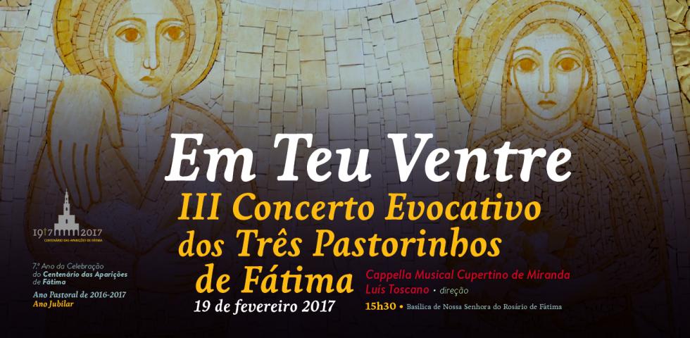 Fátima, 14 fev 2017 (Ecclesia) - O Santuário de Fátima vai acolher no próximo domingo a estreia da obra musical ‘Em Teu Ventre’, de Eugénio Amorim, composta para oito vozes a cappella, sobre o livro homónimo de José Luís Peixoto.