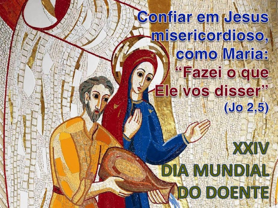 O 24.º Dia Mundial do Doente tem como tema ‘Confiar em Jesus misericordioso, como Maria: ‘Fazei o que Ele vos disser’’ (Jo 2, 5) e segundo o Papa “insere-se muito bem” no âmbito do Jubileu Extraordinário da Misericórdia.