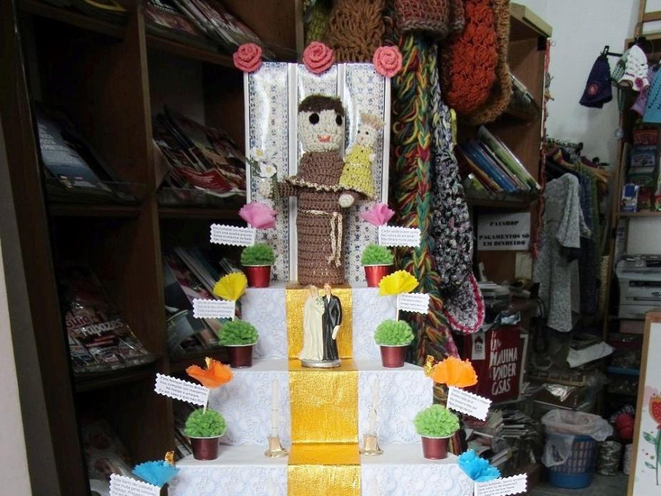 Outra comerciante que se associou a esta iniciativa, Anabela Teixeira, mostra orgulhosamente o seu trono com “um Santo António em croché” e decorado com manjericos e flores.