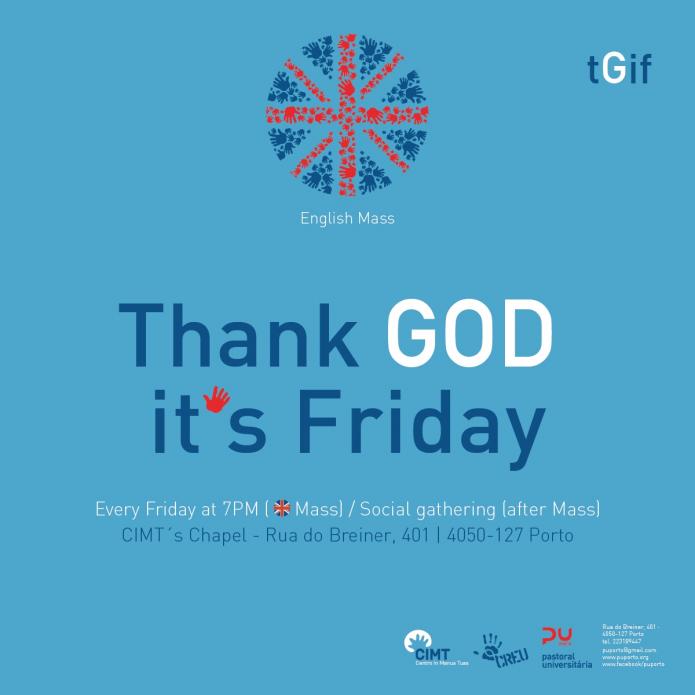 A Missa em inglês que começam hoje e passam a ter um ritmo semanal, sempre às sextas-feiras, às 19h00, uma iniciativa da Pastoral Universitária da Diocese do Porto com o Centro de Reflexão e Encontro Universitário da Companhia de Jesus (Jesuítas).
