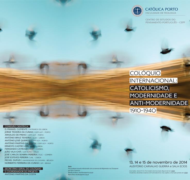 Porto, 13 nov 2014 (Ecclesia) – O núcleo do Porto da Faculdade de Teologia da Universidade Católica Portuguesa (UCP) vai promover entre hoje e sábado o colóquio internacional ‘Catolicismo, modernidade e anti-modernidade – 1910-1940’.