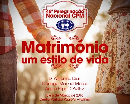 Lisboa, 19 fev 2016 (Ecclesia) – Os Centros de Preparação para o Matrimónio (CPM) dinamizam o seu encontro peregrinação nacional com o tema geral “Matrimónio, um estilo de vida”, nos dias 5 e 6 de março, no Centro Pastoral Paulo VI, em Fátima.