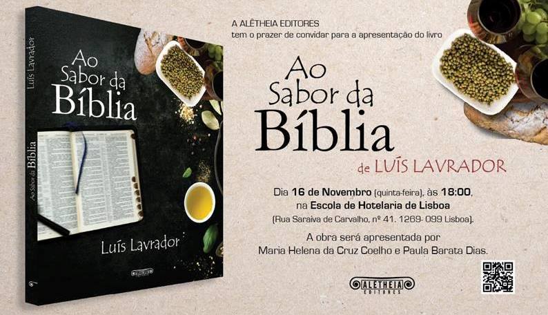 Lisboa, 16 nov 2017 (Ecclesia) – A obra «Ao sabor da Bíblia» da autoria de Luis Lavrador vai ser apresentada dia 16 deste mês, às 18H00, em Lisboa (Rua Saraiva de Carvalho nº 41), na Escola de Hotelaria da cidade