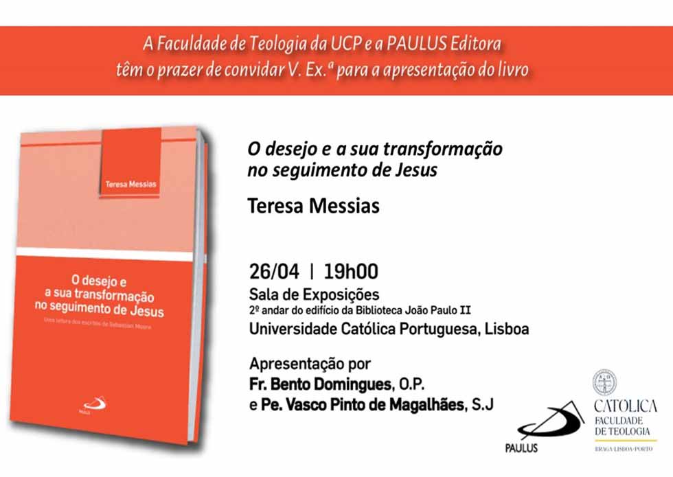 Lisboa, 19 abr 2017 (Ecclesia) – Com o título «O desejo e a sua transformação no seguimento de Jesus» vai ser lançado, a 26 deste mês, na Universidade Católica Portuguesa, em Lisboa, o livro de Teresa Messias.