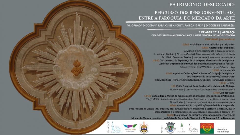 O programa da VI Jornada Diocesana para os Bens Culturais da Igreja de Santarém integra dois momentos, começando no auditório da Casa dos Patudos, no Museu de Alpiarça; durante a tarde, os participantes vão visitar a Igreja de Santo Eustáquio, do século XIX.